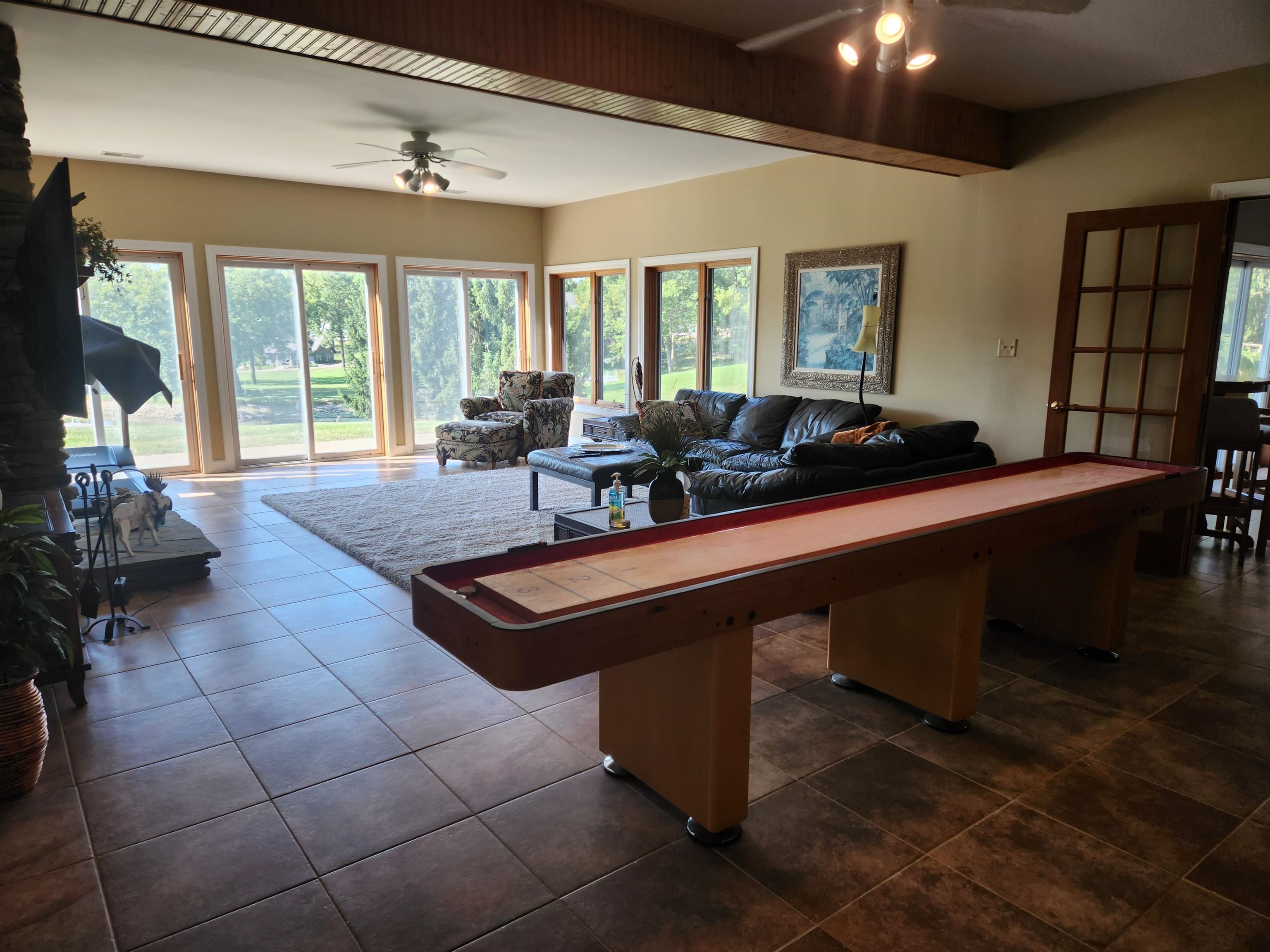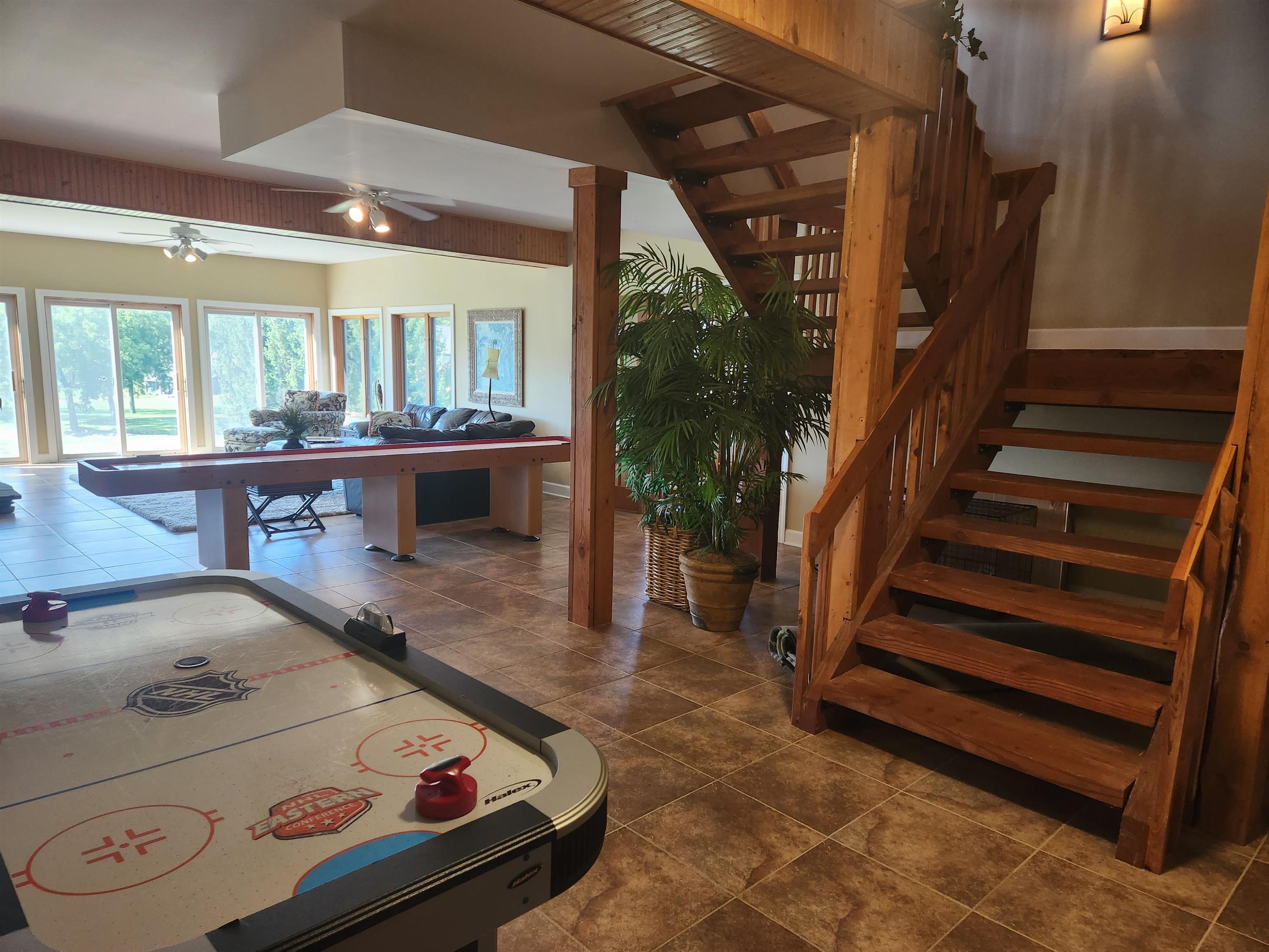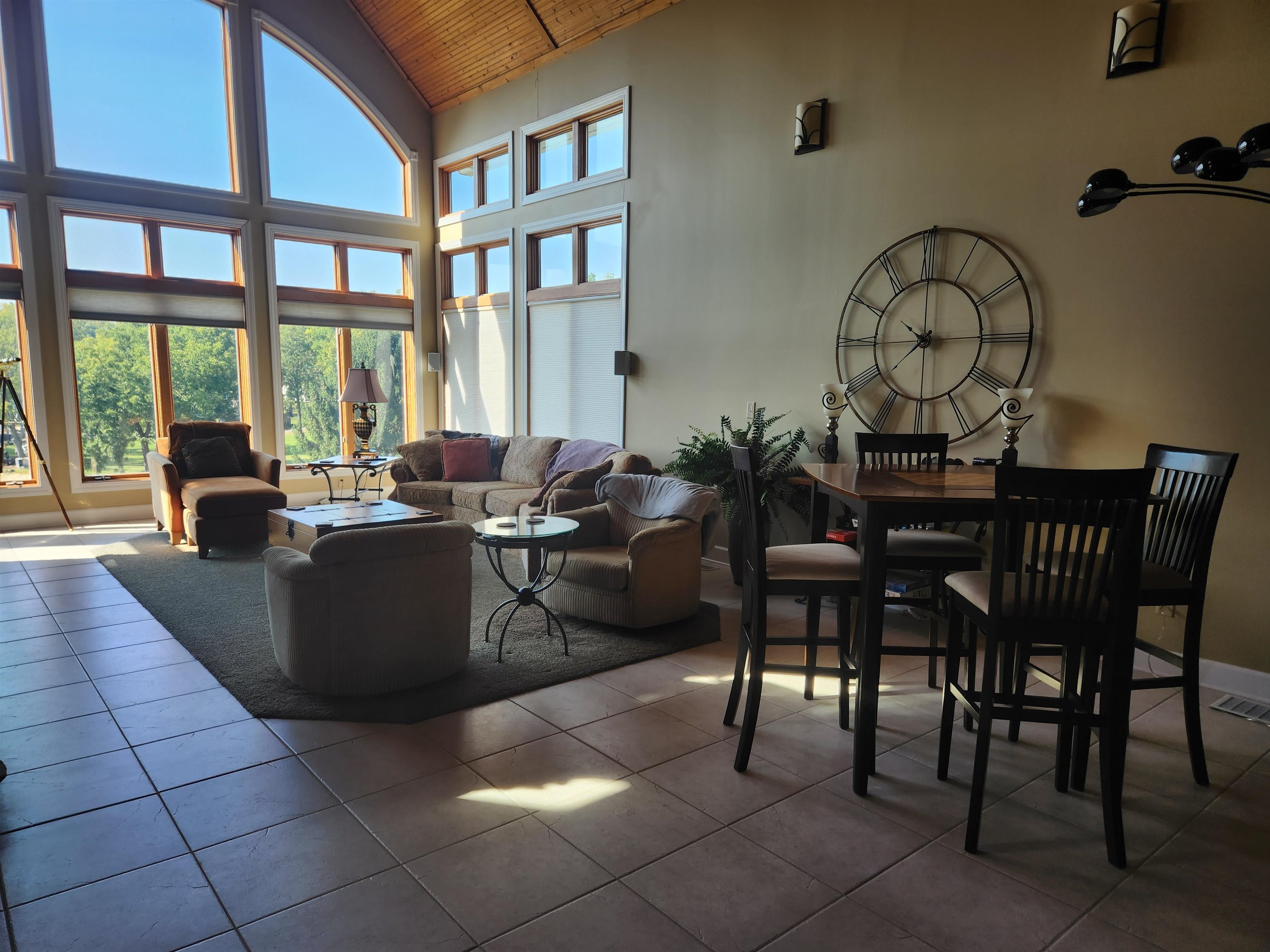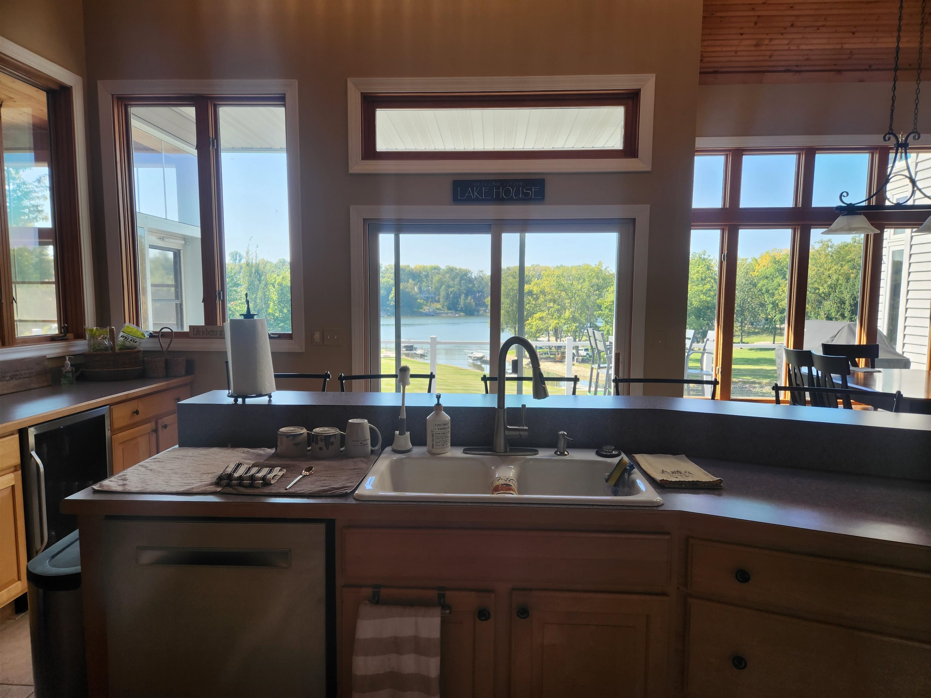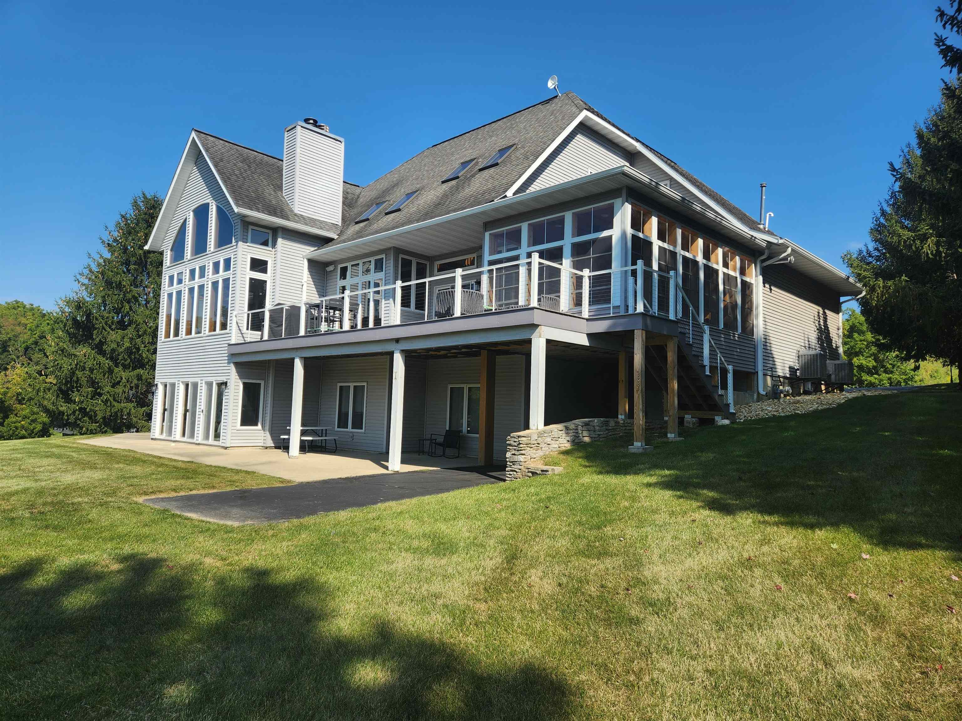 Welcome to this stunning Lake Carroll waterfront retreat! Situated on 1.67 acres with 157 feet of shoreline, this 6-bedroom, 3.5-bath home offers over 5,400 sq ft of living space and gorgeous lake views throughout. The main level features an open-concept design with a spacious living room, dining area, and a kitchen with a breakfast bar for six. A striking 3-sided fireplace is the centerpiece of this space. The primary suite is privately tucked on one end of the home, complete with its own fireplace, full bath with dual vanities, jetted tub, and walk-in shower. A powder room and a generous laundry/mud room complete the main level. Enjoy the outdoors from the maintenance-free decking or the expansive 3-season porch—perfect for entertaining. Upstairs, the loft offers flexible space for a sitting area or home office, along with two guest bedrooms, including a second master suite with a private full bath. The walkout lower level provides even more space for gathering with a large family room and wood-burning fireplace, kitchenette/bar area, rec/game room, three guest bedrooms, and a full bath. Both the family and game rooms open to the lower patio and beautifully landscaped yard. Storage and convenience abound with a 2-stall garage on the main level and an additional 2 stalls below—ideal for all your lake toys. This property combines comfort, style, and functionality in a truly beautiful setting. Don’t miss the chance to make this lakefront gem your own!