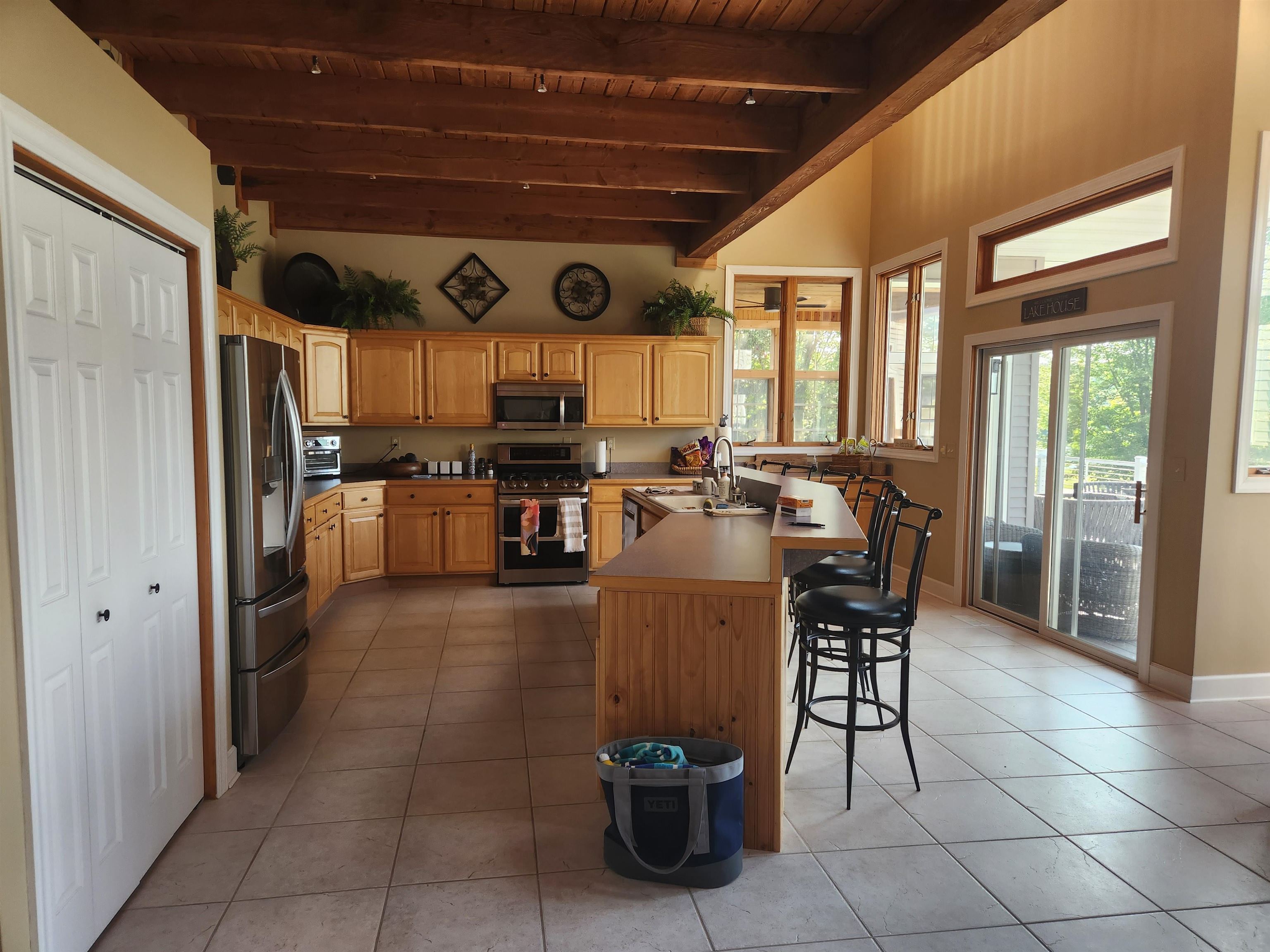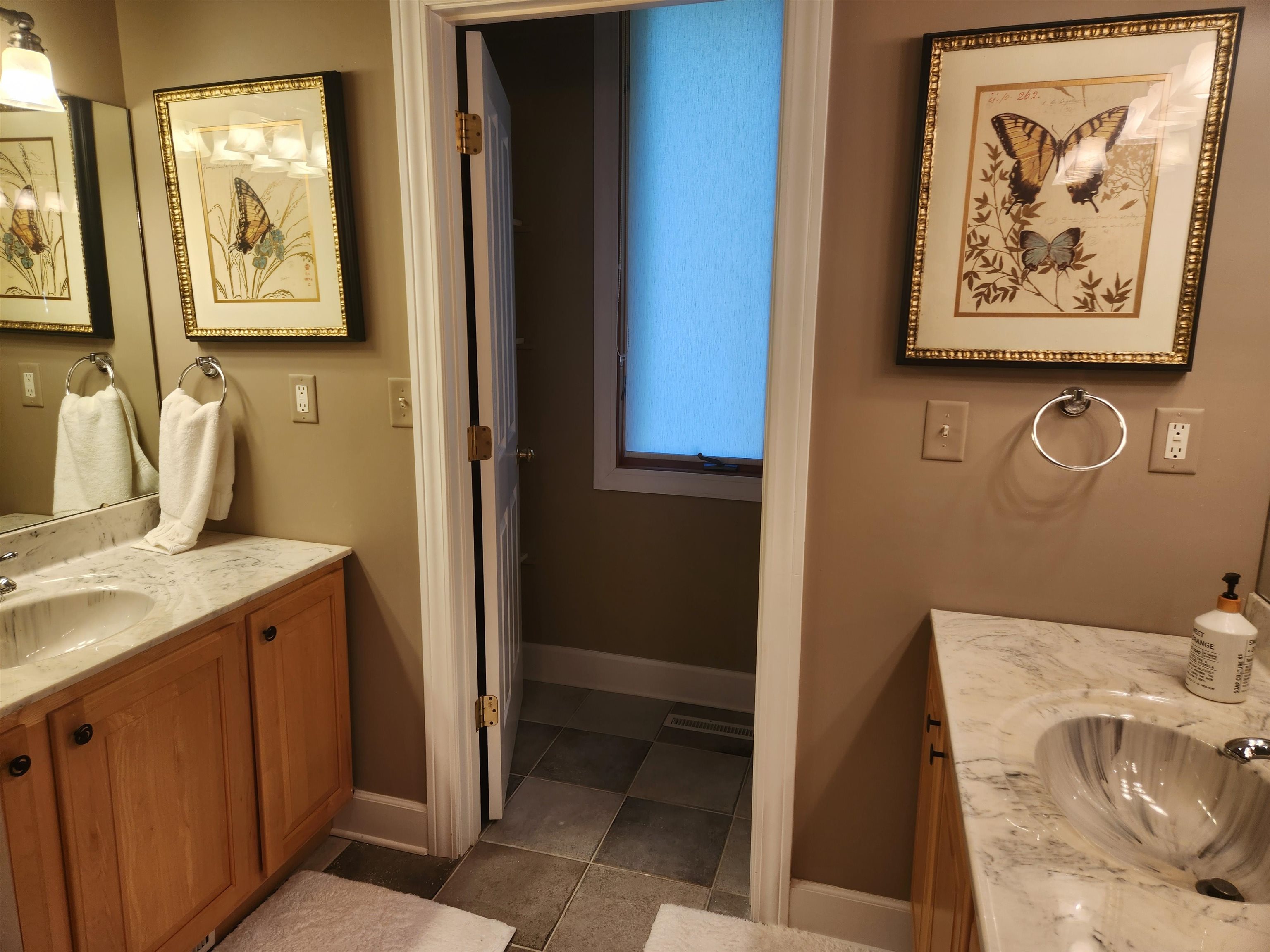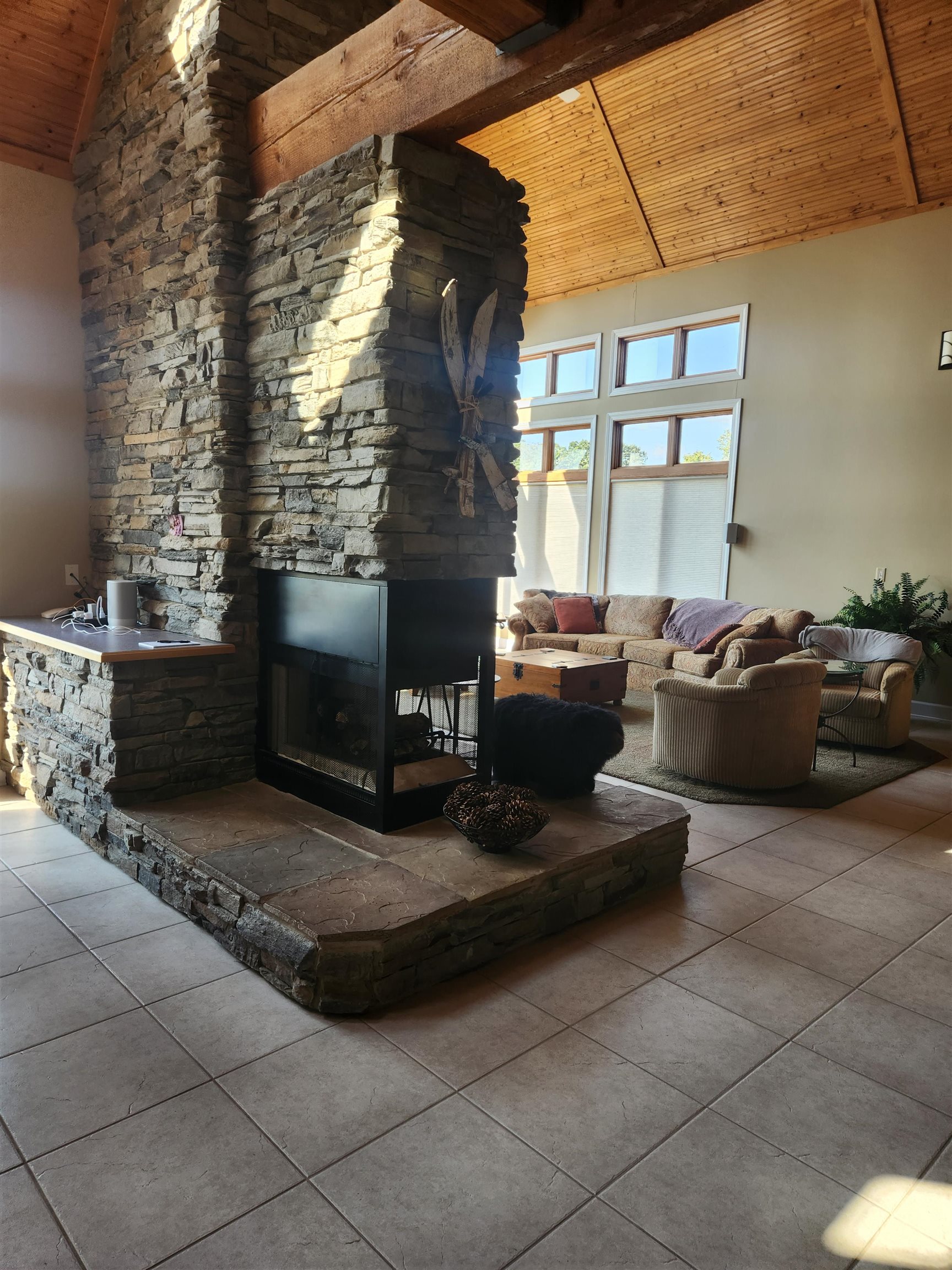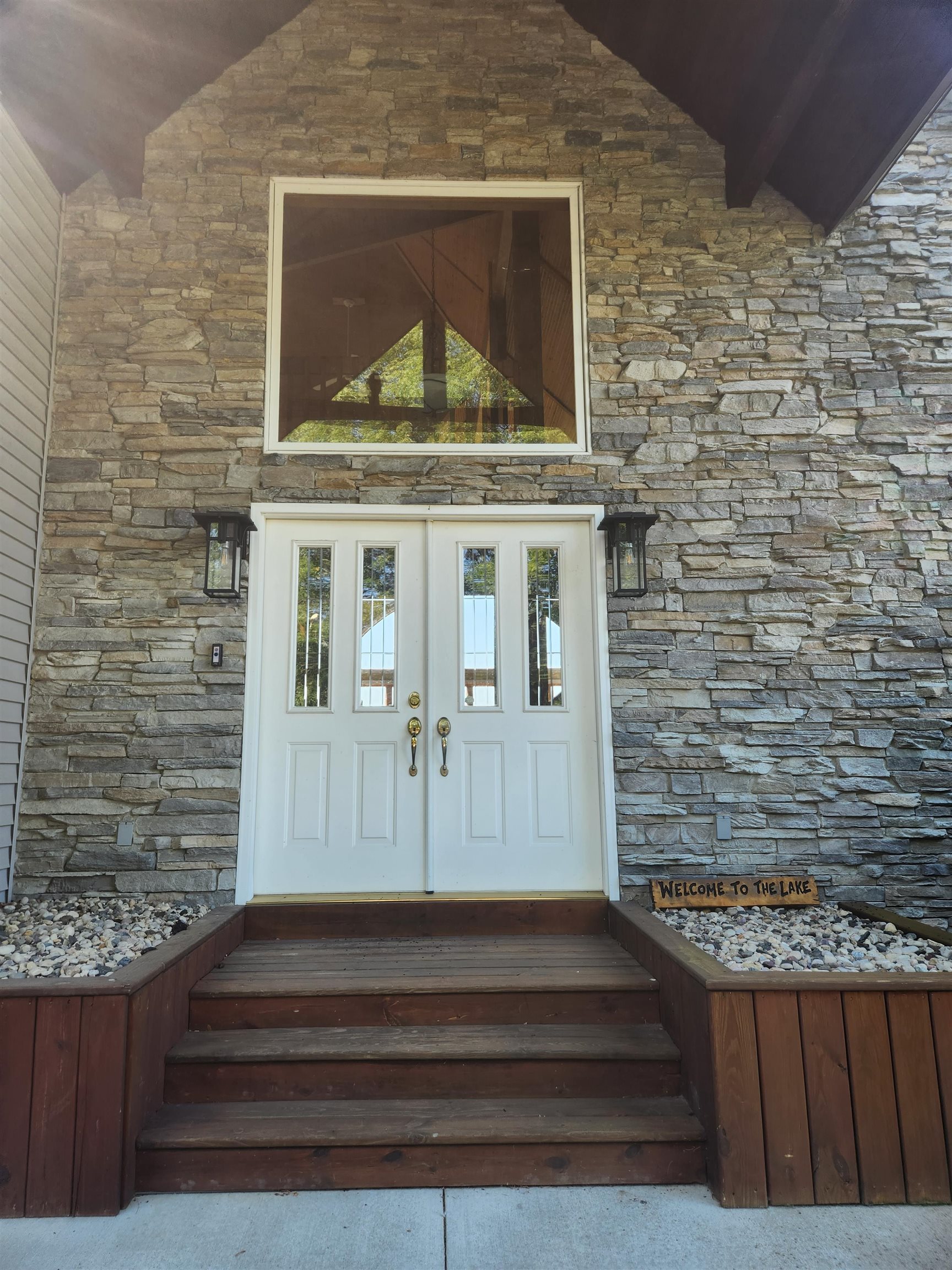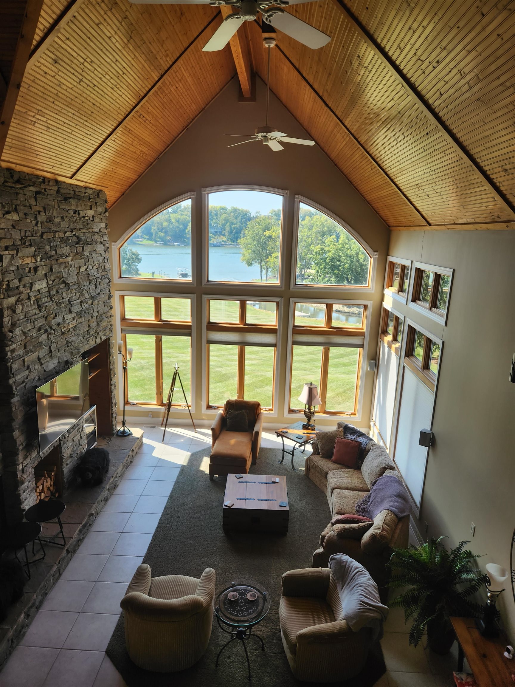 Welcome to this stunning Lake Carroll waterfront retreat! Situated on 1.67 acres with 157 feet of shoreline, this 6-bedroom, 3.5-bath home offers over 5,400 sq ft of living space and gorgeous lake views throughout. The main level features an open-concept design with a spacious living room, dining area, and a kitchen with a breakfast bar for six. A striking 3-sided fireplace is the centerpiece of this space. The primary suite is privately tucked on one end of the home, complete with its own fireplace, full bath with dual vanities, jetted tub, and walk-in shower. A powder room and a generous laundry/mud room complete the main level. Enjoy the outdoors from the maintenance-free decking or the expansive 3-season porch—perfect for entertaining. Upstairs, the loft offers flexible space for a sitting area or home office, along with two guest bedrooms, including a second master suite with a private full bath. The walkout lower level provides even more space for gathering with a large family room and wood-burning fireplace, kitchenette/bar area, rec/game room, three guest bedrooms, and a full bath. Both the family and game rooms open to the lower patio and beautifully landscaped yard. Storage and convenience abound with a 2-stall garage on the main level and an additional 2 stalls below—ideal for all your lake toys. This property combines comfort, style, and functionality in a truly beautiful setting. Don’t miss the chance to make this lakefront gem your own!